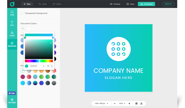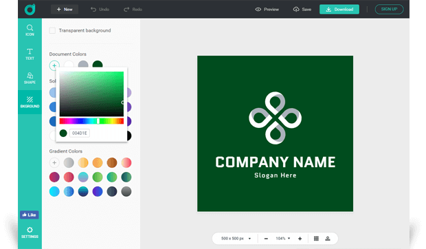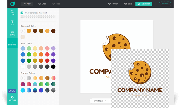 Whether you want to make a logo with transparent background, gradient background or solid background, you can get what you want with the help of DesignEvo logo maker.