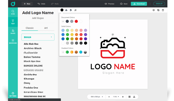 The gradient colors are commonly used in logo design. Adding gradient effects on your logo will definitely make it eye-catching and stand out from the others. And it is easy to make a gradient logo with our simple logo maker, since any color transition can be completed only by a few clicks.