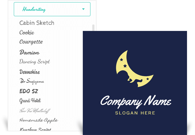 Logos with fonts that look handwritten are more popular than ever! If you are looking for a handwriting font for your logo design, look no further. DesignEvo offers dozens of script fonts like Pacifico and Sacramento. Using these fonts for your logo design will make it look personal as if it is signed by hand.