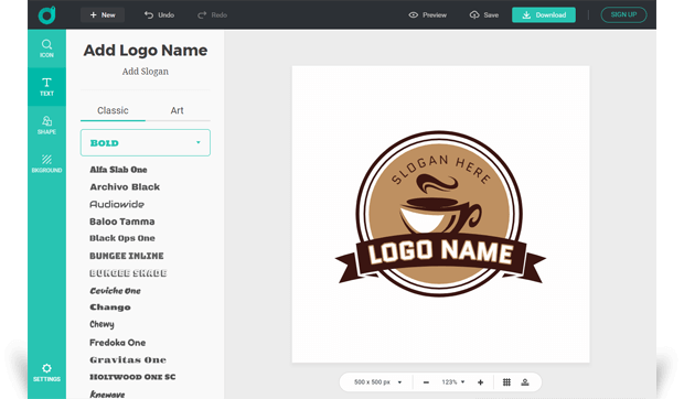 DesignEvo provides a fantastic collection of modern sans fonts for you. All these fonts, such as Loto and Open Sans, are clean, clear, and easy-to-read, which enable people to recognize your business name and slogan quickly. Play with these modern fonts and find the best match for your logo design.
