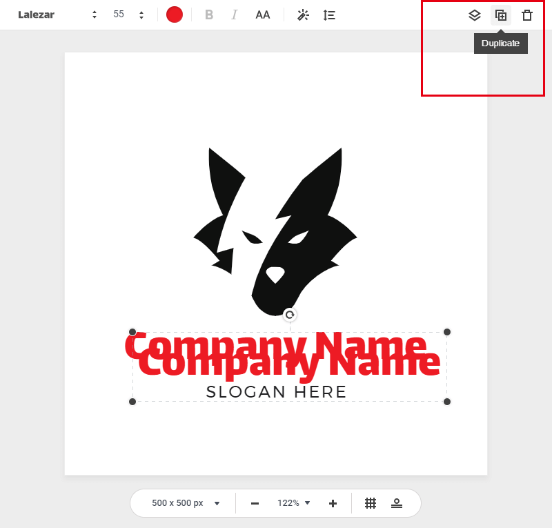 DesignEvo allows you to move layer to avoid any objects being covered on the canvas. To achieve that, select the object you want to adjust and click the layer button on the top toolbar to move it forward or backward.
