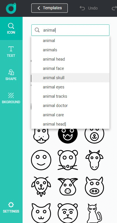 You can also enter a keyword that fits your logo design needs in the search bar and then press the hints or hit Enter on the keyboard to find matched results.